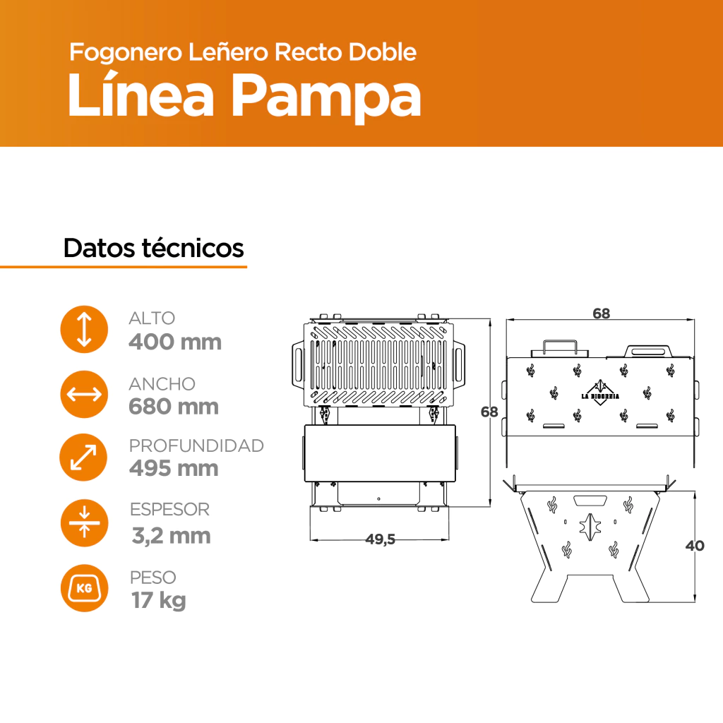 Su diseño doble permite una mayor capacidad de carga y distribución del calor, ideal para fuegos intensos.